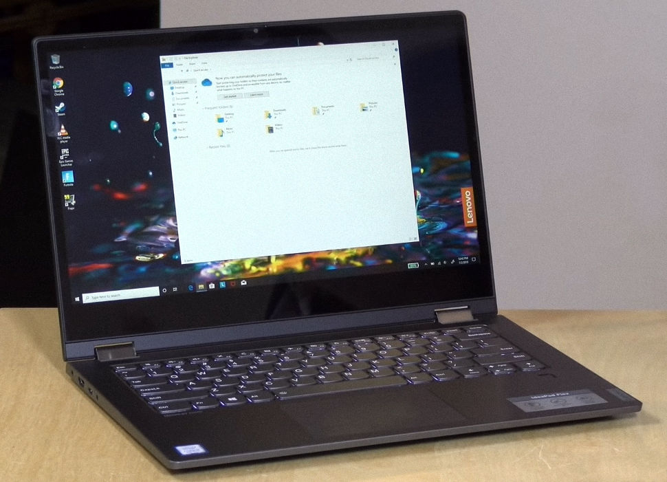 The screen of the Lenovo Flex is an IPS touchscreen HD display that responds well to gestures. It’s alright for indoor use with a brightness of around 220 nits but a bit dim in sunlight.